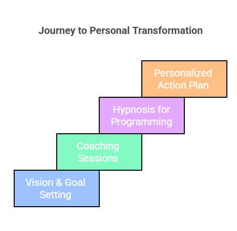 This program is rooted in coaching techniques that help you develop clarity, motivation, and the right mindset for success. Hypnosis is included as an additional tool to reinforce positive change, but the focus is on future-oriented transformation rather than exploring past experiences.