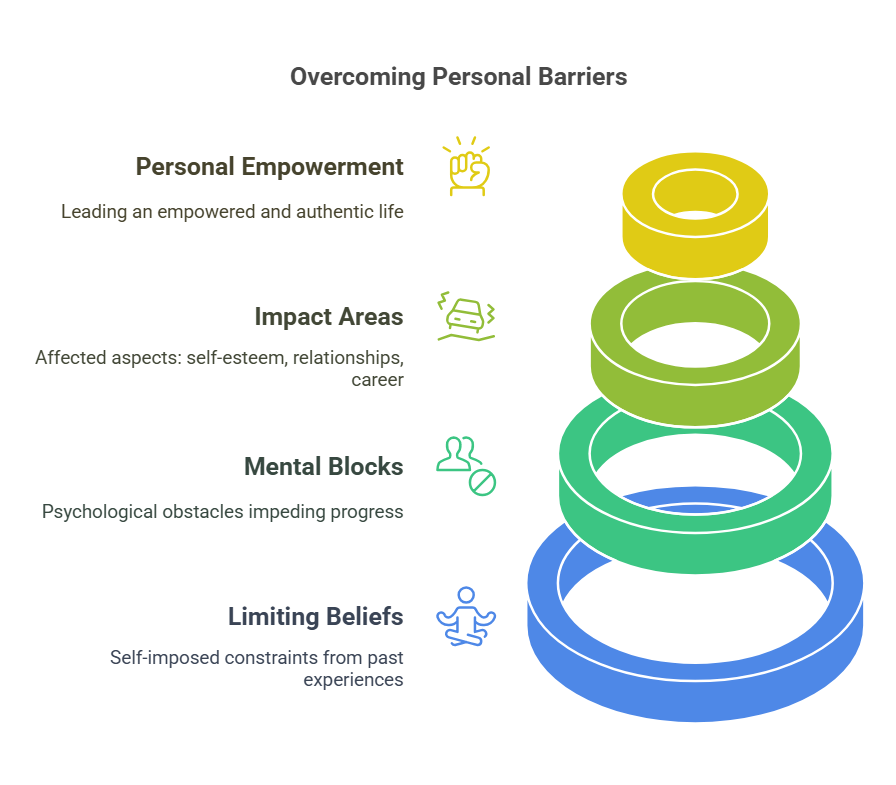 Limiting Beliefs are the self-imposed constraints that we hold in our minds, often unconsciously. These beliefs are typically formed from past experiences, societal conditioning, and negative self-talk. Common limiting beliefs include thoughts like “I’m not good enough,” “I don’t deserve success,” or “I’m not capable of change.” These beliefs act as mental barriers, preventing us from pursuing opportunities and achieving our goals.