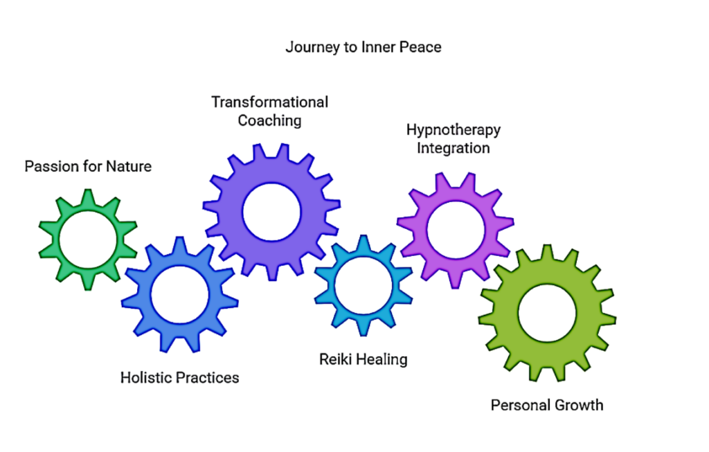 I practice transformational life coaching, holistic therapy, and Reiki energy healing. Soon, I’ll be adding hypnotherapy to my services. These therapies have been instrumental in my journey, providing me with tools to navigate self-discovery, cope with stress, and find inner peace. They have transformed my life, and my experiences inspired me to help others achieve similar transformations.